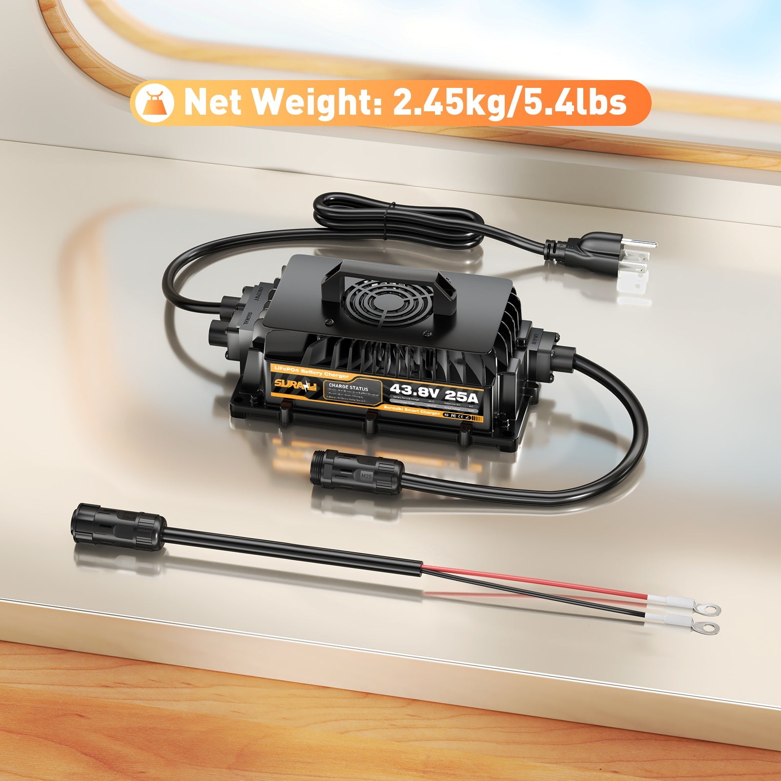 Suraziki 43.8Volt 25AMP Lithium LiFePO4 Onboard Battery Charger For 36V(38.4V) Golf cart, RVs, Boat and Home